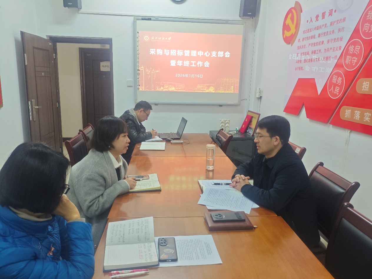 2026年1月16日,采购与招标管理中心召开支部会议暨年终工作部署会,中心支部书记、主任朱张军主持会议,全体工作人员参会。会议集中开展支部专题学习,传达学校相关会议精神,统筹部署寒假期间重点工作。